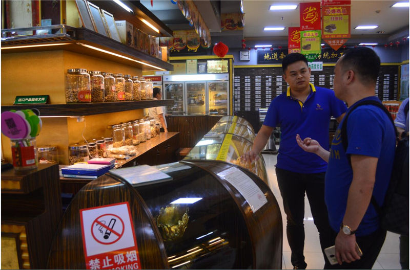 2017年8月19日,集團(tuán)公司總經(jīng)理助理符詩揚(yáng)先生帶領(lǐng)郭洋邑經(jīng)理及公司員工熱烈歡迎“成長藥店浙江分會成員“一行,安排成員們參觀了我司廠區(qū)及位于海府路的參茸大世界旗艦店。