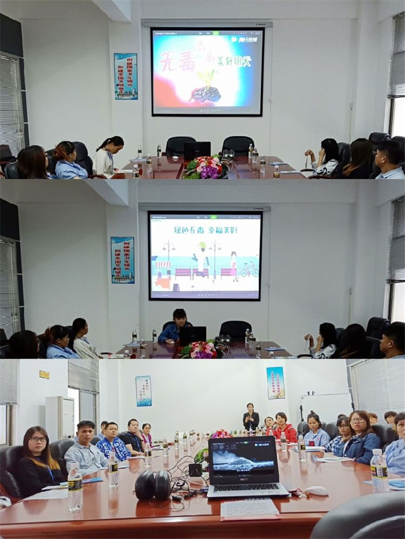 禁毒志愿者組織企業(yè)職工觀看創(chuàng)建全國(guó)禁毒示范城小視頻和禁毒宣傳片無(wú)毒青春,美好明天