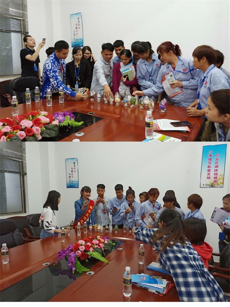 禁毒志愿者以毒品仿真模型向職工展示毒品的種類(lèi)和形態(tài)特征