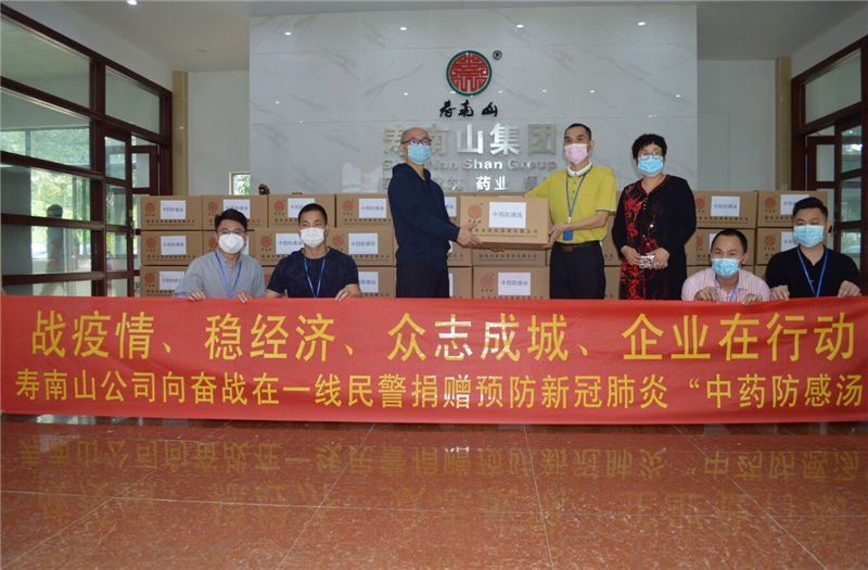 2020年3月3日上午,海南壽南山參業(yè)有限公司通過海南省醫(yī)藥行業(yè)協(xié)會向海南省公安廳、海口市公安局的一線干警捐贈了價(jià)值11.7萬元的預(yù)防新冠肺炎“中藥防感湯”。省廳卜主任、市局陳主任、協(xié)會魯秘書長、我司副總經(jīng)理戴初雄先生攜各部門經(jīng)理共同出席了捐贈儀式。