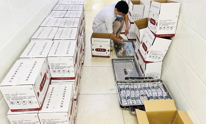調(diào)劑室的藥師們負(fù)責(zé)審核、調(diào)劑、復(fù)核處方;煎煮車間按操作規(guī)程進(jìn)行:泡、煮、打包的工序;成品庫統(tǒng)一收集成品,待冷卻后貼標(biāo)、封裝、制單;配送人員星夜兼程,馬不停蹄地將中藥防感湯第一時(shí)間送往海口市二十六個(gè)隔離點(diǎn)供三千余人服用,并向各市縣中醫(yī)院配送共計(jì)約一萬余付。各個(gè)工序忙而不亂,忙而有序。壽南山將士們?cè)诜浅r(shí)期,表現(xiàn)出了可貴的責(zé)任擔(dān)當(dāng),大家心連心、肩并肩,主動(dòng)參與、積極配合、鼎力支持疫情防控工作,共同筑起了堅(jiān)不可摧的阻擊防線。